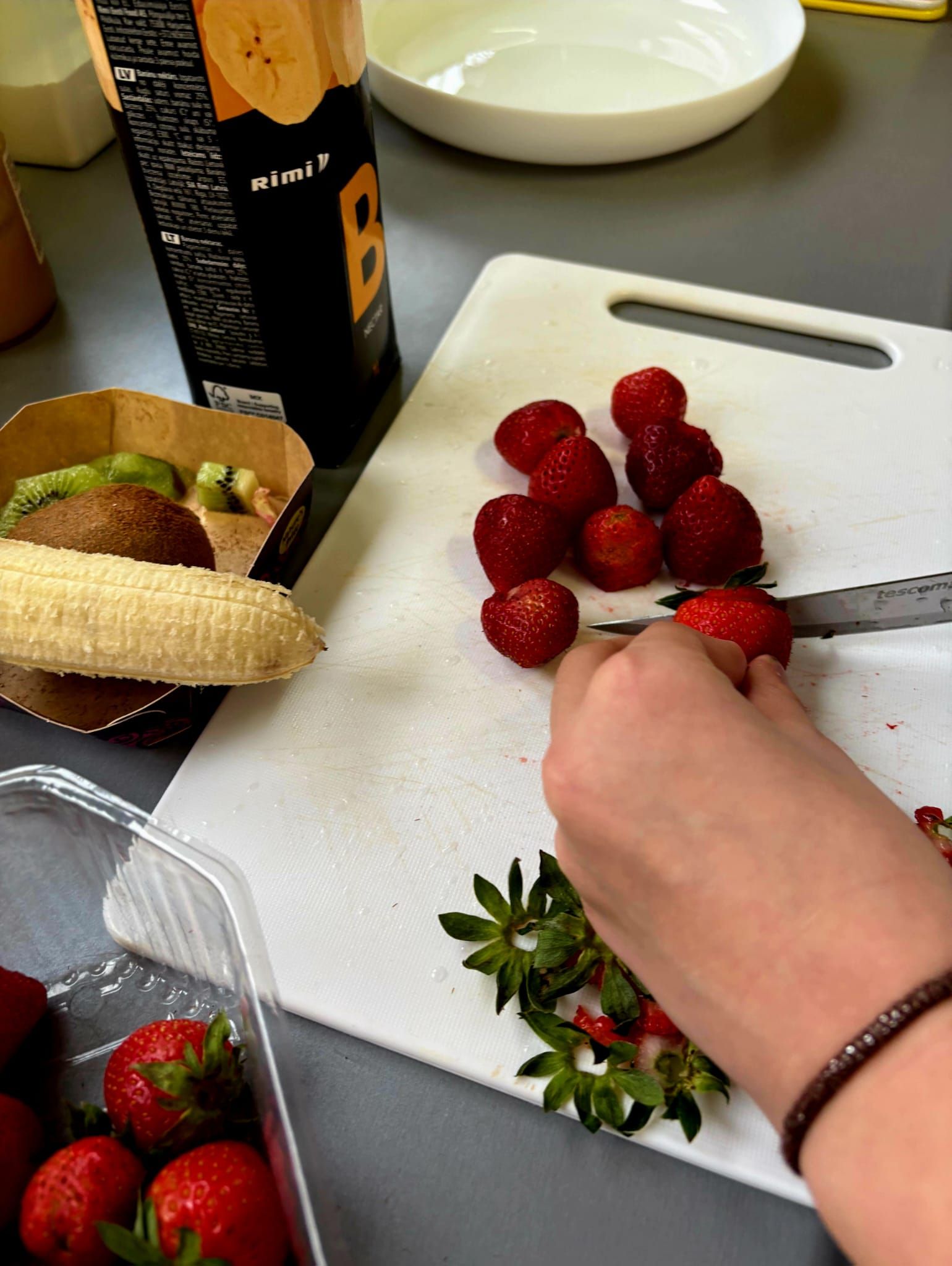 Stundas laikā skolēni prezentēja pagatavoto ēdienu, pastāstot par tā sastāvdaļām un minot interesantus faktus par augļiem un ogām.