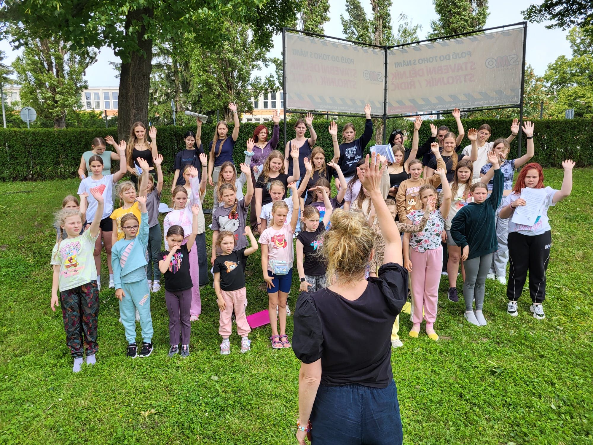 Ar meitenēm kopā ir RIV skolotājas: Kristīne Upmane, Gita Zelka, Aigija Grāvīte, Gundega Ventiņa, kora vadītāja Rita Birzule un koncertmeistare Dace Ramma-Grunte.