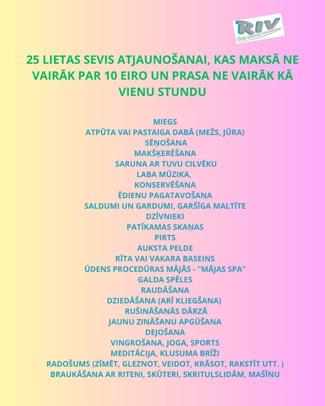 Domājot un runājot par bērniem, netika aizmirsts arī par pašiem pedagogiem – Jūlija rosināja skolotājus dalīties pieredzē, kas ir tās darbības vai lietas, kuras pieejamas, izpildāmas, neprasa daudz laika un līdzekļu un palīdz vairot skolotāju labbūtību. Rezultātā tapa lieliska atgādne.