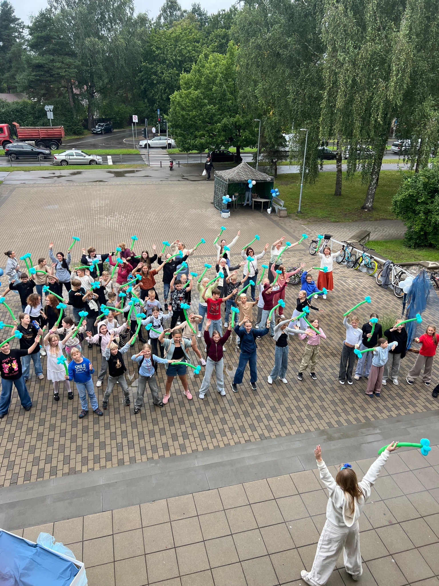 Svētku izskaņā ikviens dalībnieks, saņemot simbolisko Aspazijas zilo puķi, kustību meistares Gabrielas (11.a) vadībā varēja iesaistīties apsveikuma dejā “Ziedu klēpis jubilāriem”.