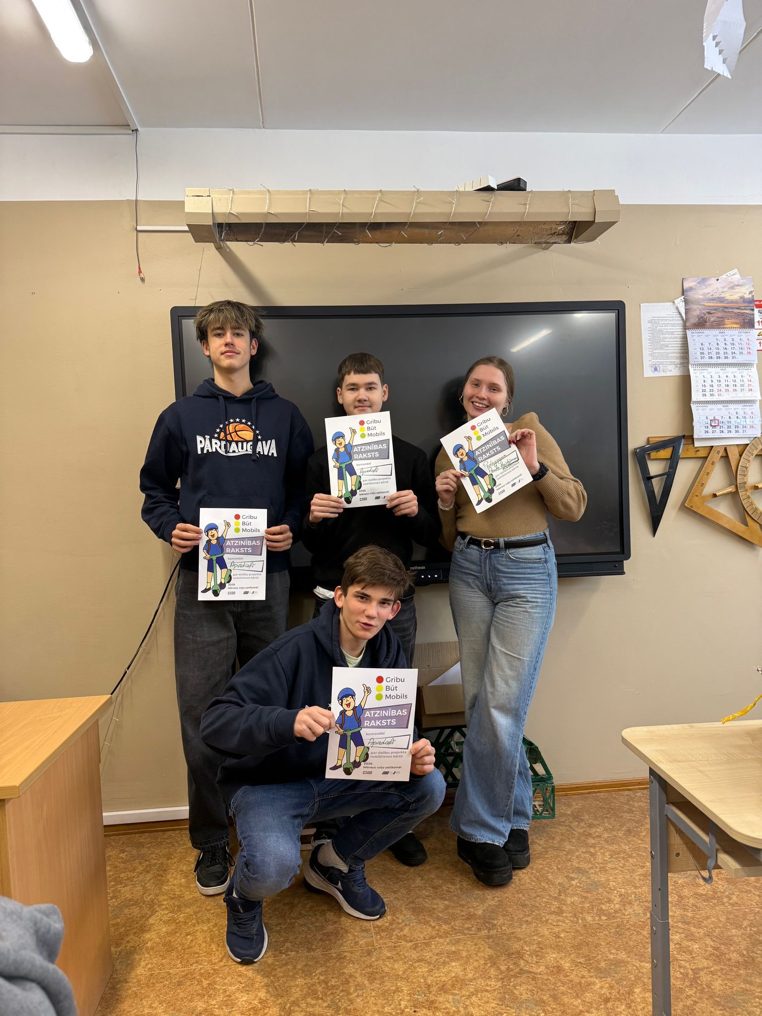 Rīgas Imantas vidusskolas 8.b klases komanda “Apvedceļš”, kuras sastāvā ir Krišs Ozoliņš, Markuss Oļeiņikovs, Gustavs Bērziņš, Gustavs Polis un Jānis Bisters, kopā ar skolotāju Paulu Kristiānu Kalniņu piedalās konkursā “Gribu but mobils”.